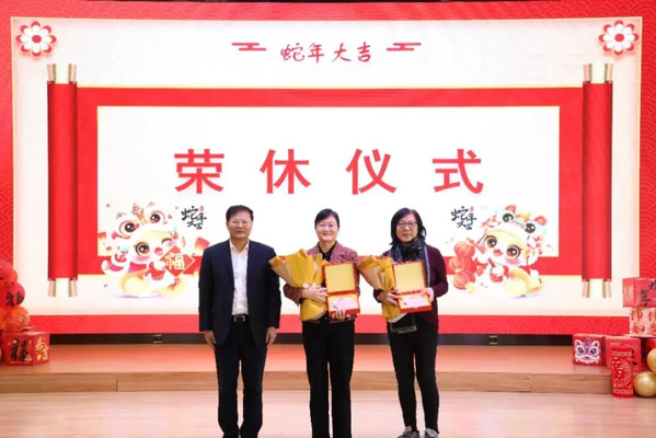 活动现场为2024年度机关退休教职工举行了荣休仪式。现场播放了机关党委、机关工会为4位退休教职工精心准备的荣休视频,回顾了每一位荣休教职工的主要工作经历和贡献,并送上温情祝福。谭天伟向荣休教职工代表颁发了印有荣休教师基本信息、履职经历、荣休祝福语的纪念品,并向机关教职工送上新春祝福。仪式现场气氛温馨,情谊浓浓。