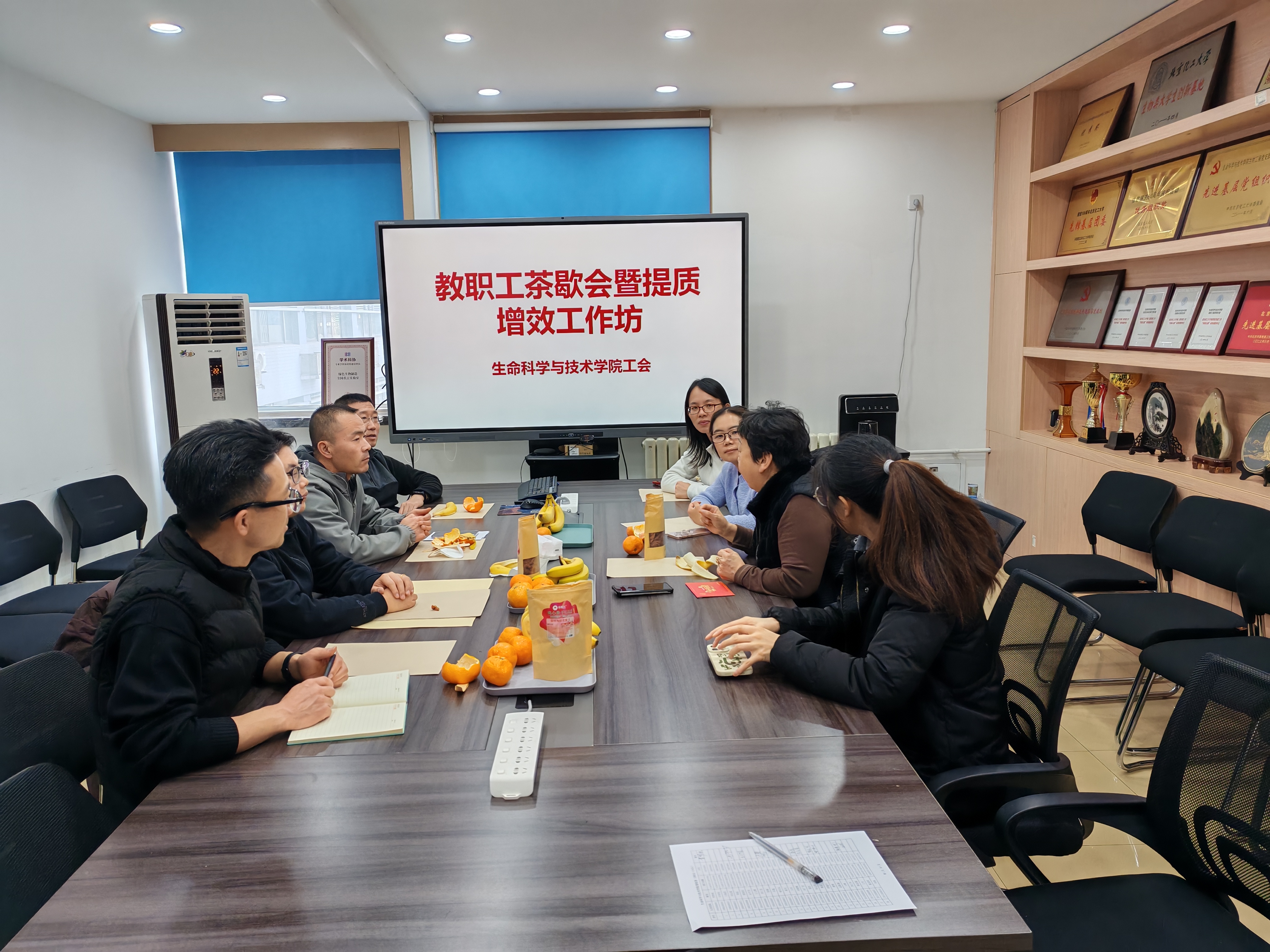 为提升工作效率,增强学院教师幸福感获得感,2025年12月19日中午,生命学院工会在科技大厦304会议室组织茶歇会暨提质增效工作坊,学院行政管理人员及教师代表参加。