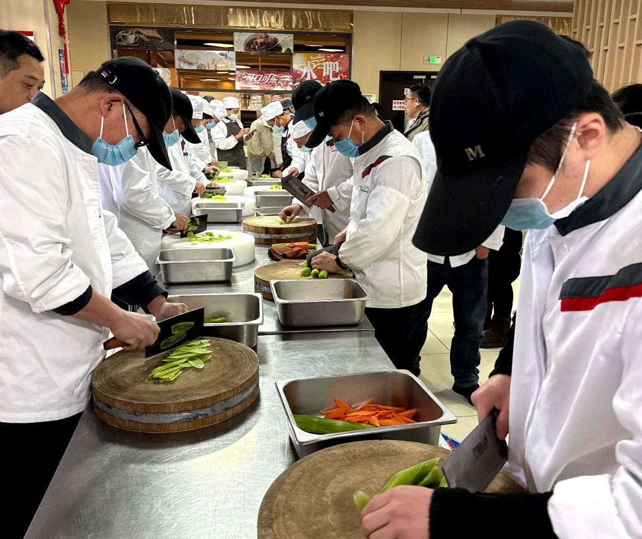 为实现这一目标, 本次比赛在赛制上大胆创新,首次设立“厨师”与“厨工”双赛道。厨师赛道重在专业深度,需完成经典副食“西红柿炒鸡蛋”和创意主食研发;厨工赛道则侧重基础功底,考核食材切配与米饭精准称重。特别值得一提的是,比赛允许厨工跨赛道参赛,为员工提供了突破自我、展示综合能力的平台。