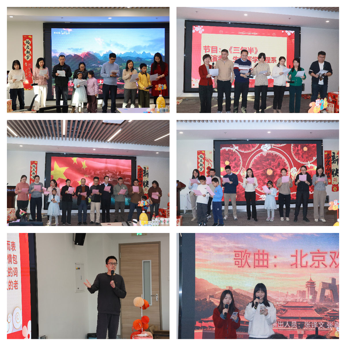 总结表彰环节后,文艺表演与互动游戏轮番登场,会场气氛持续升温:学生代表合唱《北京欢迎你》,传递热忱活力;生物工程系带来合唱《相亲相爱一家人》,诠释学院凝聚力;生物技术系、制药工程系分别以合唱《我和我的祖国》《歌唱祖国》,抒发家国情怀;生物医学工程系的《三句半》,用诙谐语言盘点学院年度趣事,引发全场共鸣。小朋友们也带来了精彩的节目,为会议增添了不少乐趣。