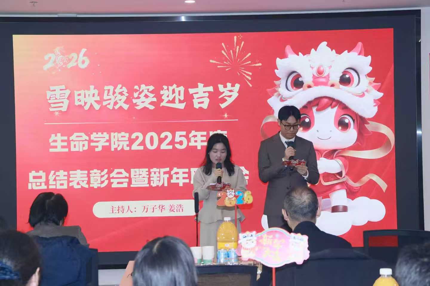 雪迎骏姿开吉岁,春启华章谱新篇。为总结过往、表彰先进、共迎新春,2026年1月16日下午,北京化工大学生命科学与技术学院在高精尖大厦702会议室举行2025年度总结表彰会暨2026年新春联欢会。北京化工大学校长谭天伟,副校长甘志华、苏海佳、徐福建以及部分校机关负责同志,院长童贻刚等学院领导班子成员,教职工、部分退休老同志、教职工子女参加会议。会议由本科生辅导员万子华、姜浩主持。